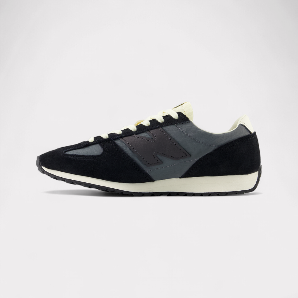Der 471 macht aus der Lauftradition der Siebzigerjahre ein neues Must-have für den Alltag mit einer Neuinterpretation der visuellen Elemente dieser Ära. Das schlanke flache Profil, die keilförmige Mittelsohle aus EVA und die Aussensohle mit Fischgrätprofil bieten einen vertrauten Ausgangspunkt, sodass die hochwertigen Materialien voll zur Geltung kommen. Atmungsaktives Mesh-Obermaterial und Veloursleder-Overlays bestechen durch zwanglose Lässigkeit, während das klassische „Fang“-Design an der Zehenkappe ein einzigartiges visuelles Merkmal von New Balance ist, mit dem der 471 heraussticht.