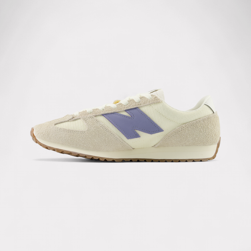 Der 471 macht aus der Lauftradition der Siebzigerjahre ein neues Must-have für den Alltag mit einer Neuinterpretation der visuellen Elemente dieser Ära. Das schlanke flache Profil, die keilförmige Mittelsohle aus EVA und die Aussensohle mit Fischgrätprofil bieten einen vertrauten Ausgangspunkt, sodass die hochwertigen Materialien voll zur Geltung kommen. Atmungsaktives Mesh-Obermaterial und Veloursleder-Overlays bestechen durch zwanglose Lässigkeit, während das klassische „Fang“-Design an der Zehenkappe ein einzigartiges visuelles Merkmal von New Balance ist, mit dem der 471 heraussticht.