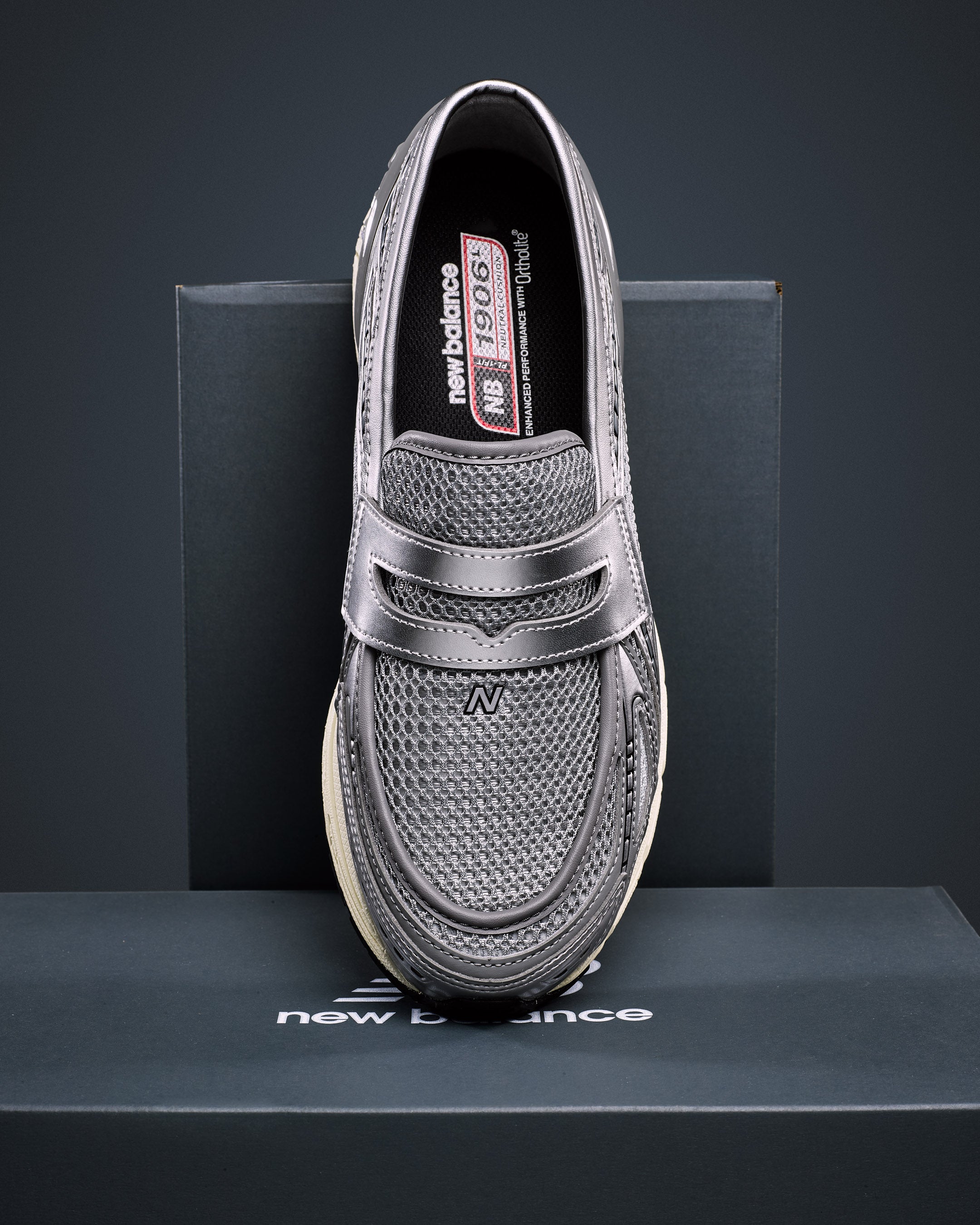 Die Gegenüberstellung von Turnschuhen und formellerer Kleidung ist keine neue Idee, aber so wurde es noch nie gemacht. Der neue Loafer von 1906 nimmt die charakteristischen Merkmale der Silhouette – das offene Netz-Oberteil, die geschwungenen synthetischen Überlagen und die 860v2-Sohle mit segmentierten ABZORB SBS-Pods an der Ferse – und gestaltet sie in Form eines klassischen Penny Loafers neu. Dieses Design verwischt nicht nur die Grenzen zwischen Hochleistungs-Tradition und modernster Mode; Es beseitigt die Unterscheidung ganz.